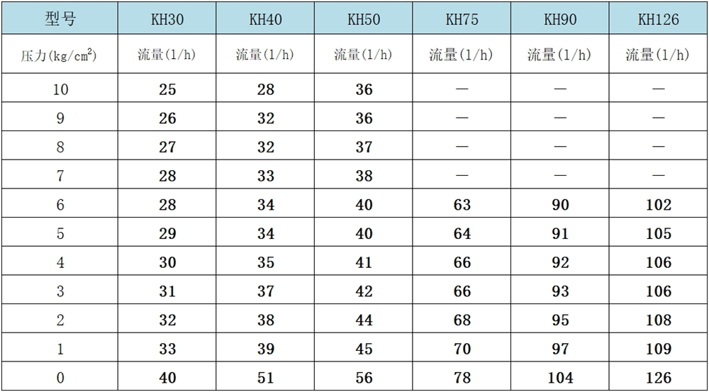 KH30-KH126系列性能曲線表