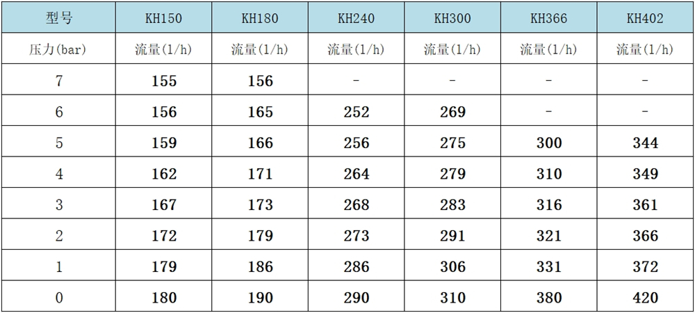 KH150-KH402系列性能曲線表