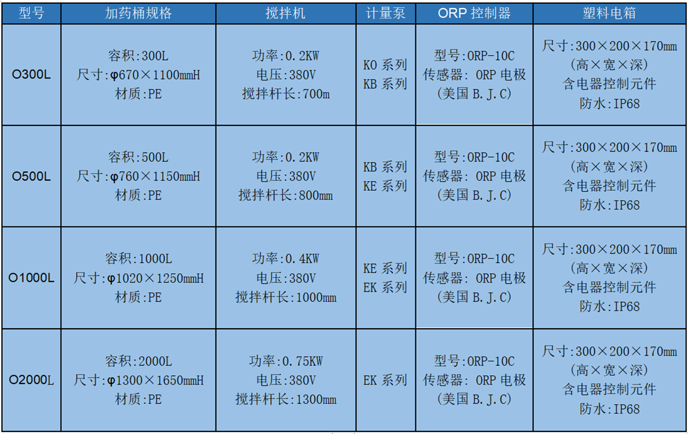 ORP控制器加藥系統(tǒng): ORP控制器加藥系統(tǒng)由以下四部分組成: 1、ORP控制器+電箱(提供控制范圍) 2、計量泵(提供流量××L/H) 3.攪拌機(提供功率、轉(zhuǎn)速) 4.加藥桶(提供容量材質(zhì))