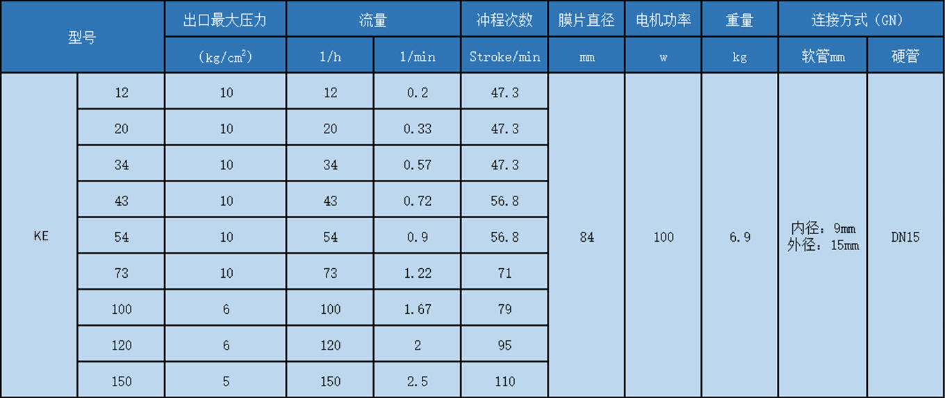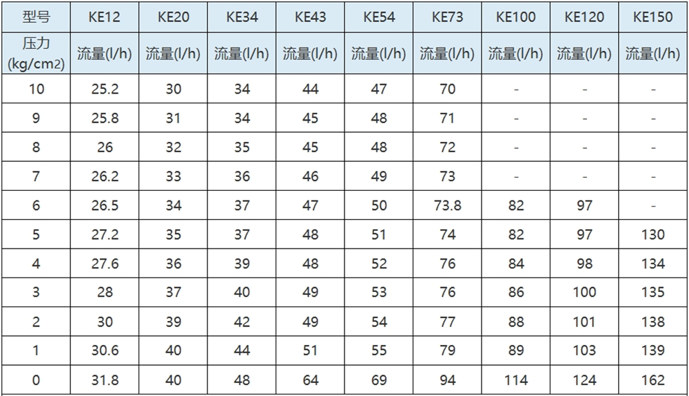 KE系列性能曲線表